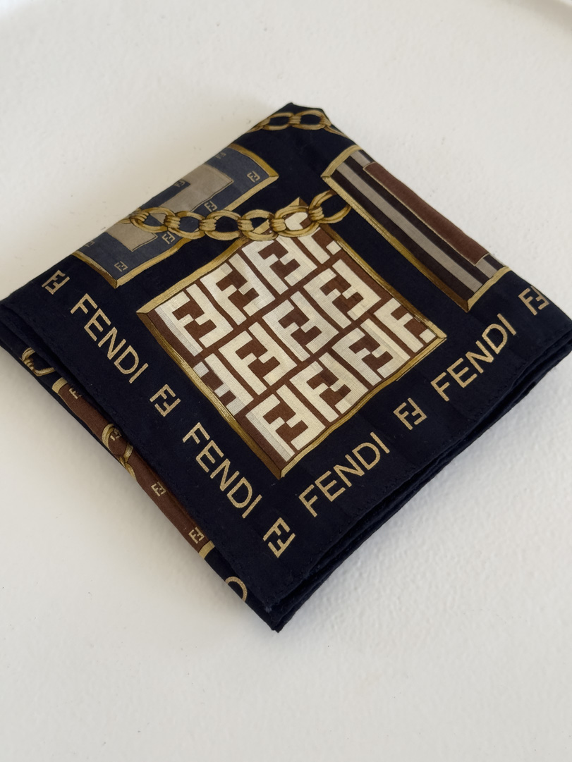 This vintage Fendi scarf is in very good to excellent condition. Perfect to wear around the neck, tie in your hair, or wrap around your bag. Please note the small dimensions of this scarf: 56 x 56 centimeters.