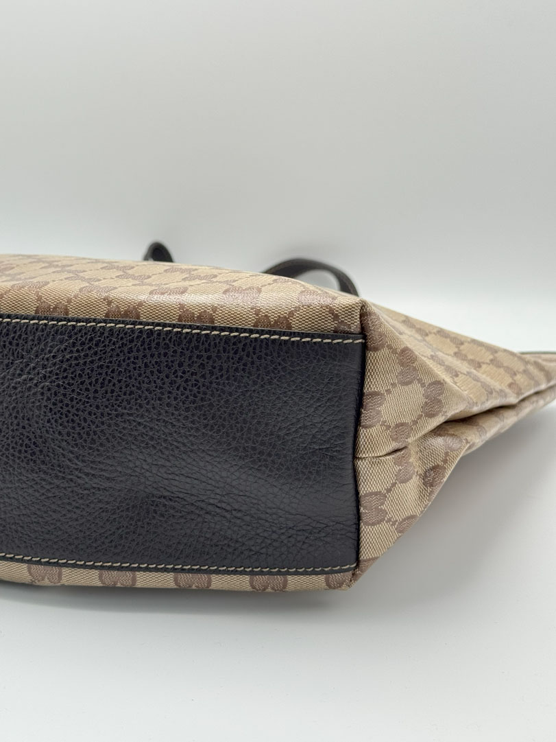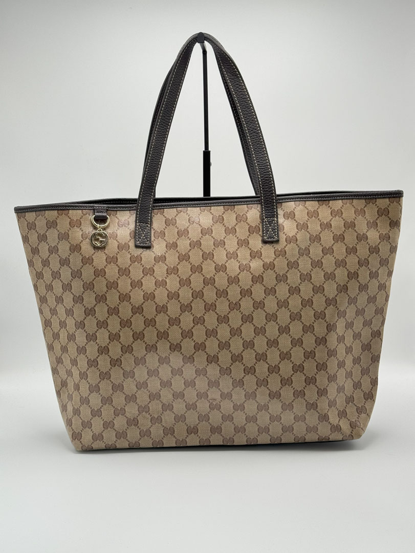 This vintage Gucci Canvas Tote is a large-sized tote crafted from GG canvas. It’s in very good condition, with a clean interior and a small zipped pocket inside. There’s a small stain on the front, but overall the bag remains in beautiful shape. Serial number: 211525200047. Dimensions: 38 x 32 x 10 cm.