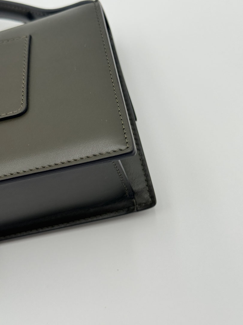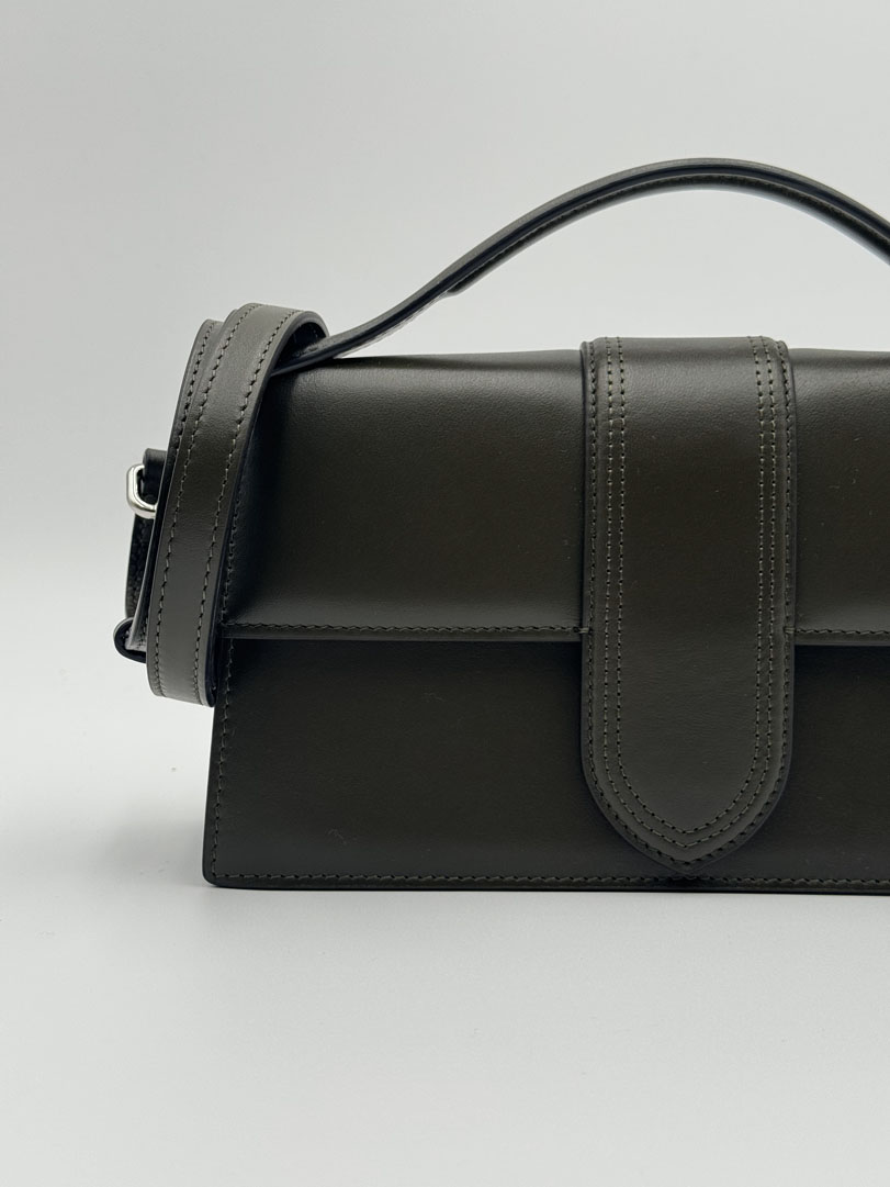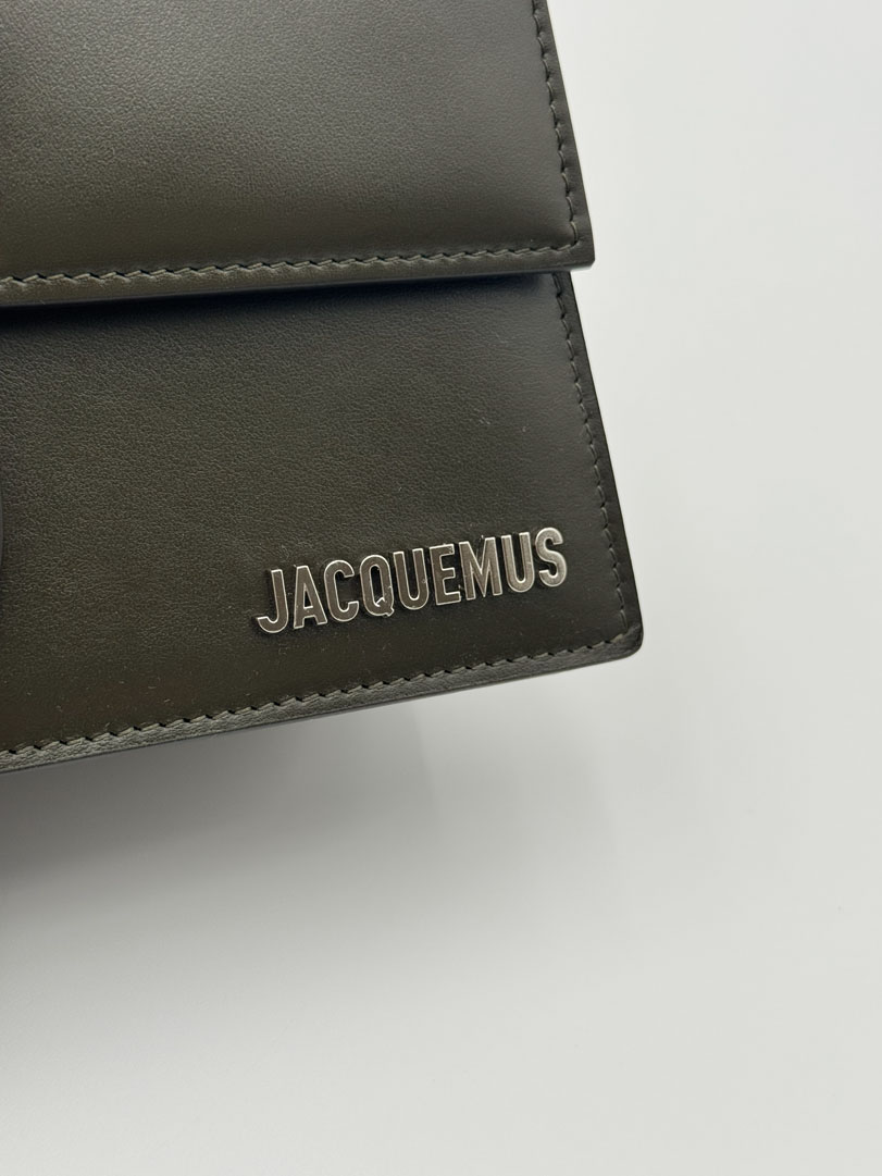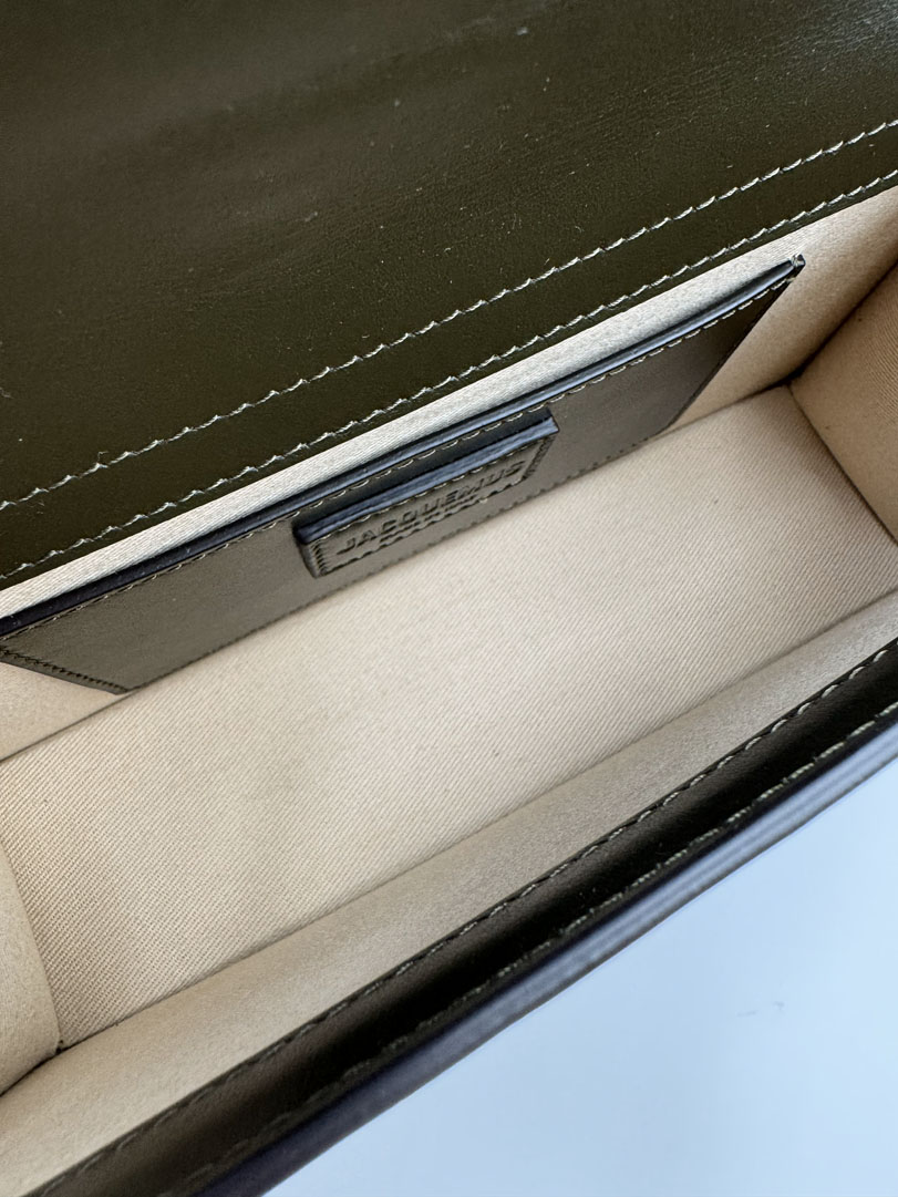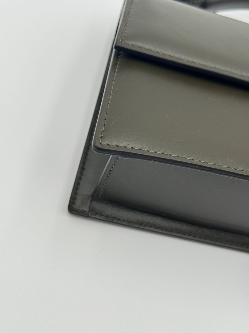 This pre-loved Le Grand Bambino Khaki is a crossbody bag made from khaki leather with silver-tone hardware. The item is in a fantastic condition! New with or without tags. The interior is clean and features an extra pocket. Dimensions are 23.5 x 13 x 7 cm. It comes with a dustbag, tag, and a long strap. The strap is adjustable, and the photo was taken with the strap on the shortest setting.