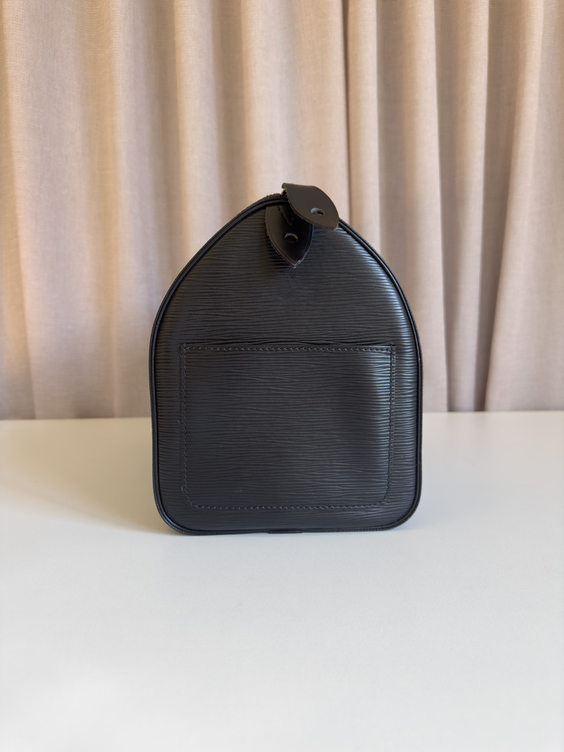 This pre-loved Louis Vuitton Epi Speedy is a classic vintage bag in stunning condition. Crafted from black Epi leather with gold-tone hardware, it shows little to no imperfections. The interior is clean, and the zipper functions perfectly. A timeless and sophisticated handbag. The datacode is VI0936 (1996). Dimensions: 32 x 22 x 16 cm.