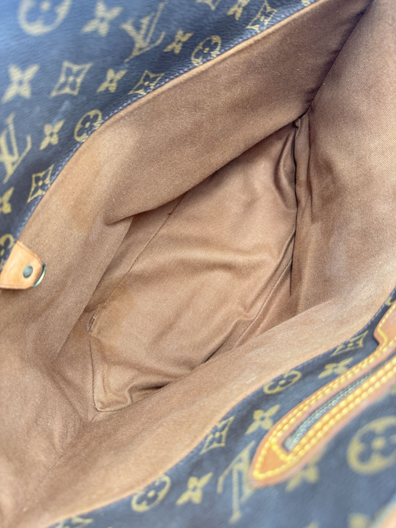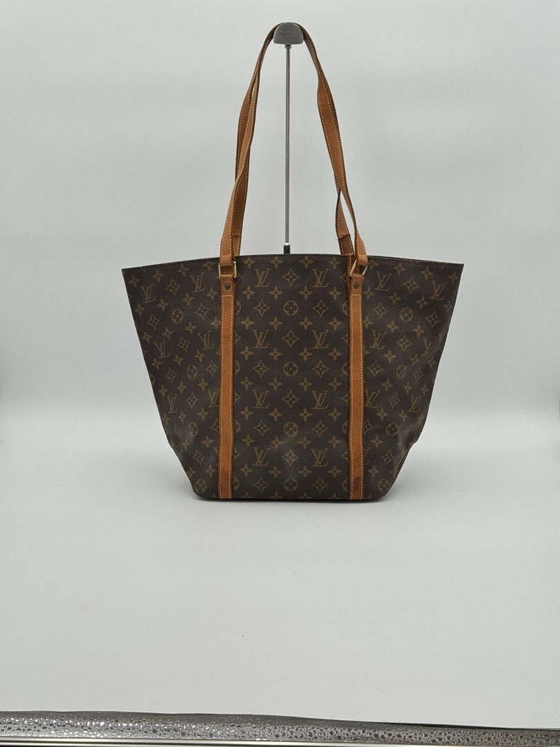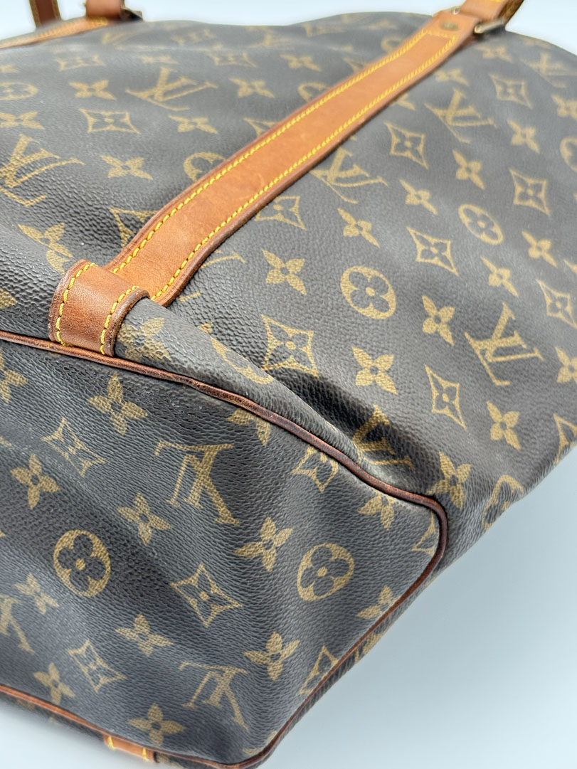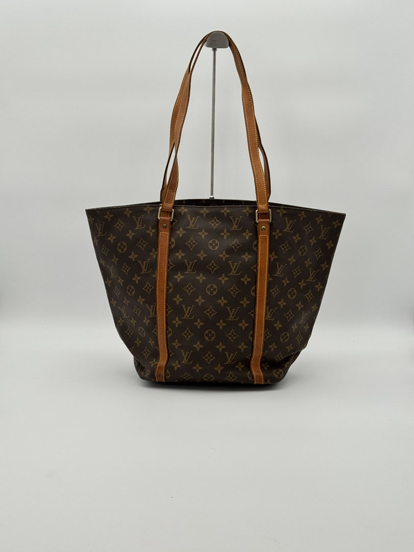This vintage Louis Vuitton Monogram Sac Shopping Tote Bag is a shoulder bag made from brown Monogram canvas with gold-tone hardware. The item is in very good condition, showing some user signs such as wear on the corners. The interior is clean with an extra pocket. The bag has a vintage smell. The datacode is MB1907, from the year 1997, and the dimensions are 46 x 32 x 14 cm.
