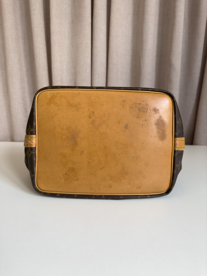 This vintage Louis Vuitton Petit Noé is a beautiful shoulder bag crafted from monogram canvas with vachetta leather and gold-tone hardware. It is in very good condition, with light imperfections, scratches, and wear on the vachetta, while the hardware still shines nicely. The interior is clean. Year: 1992. Dimensions: 27 x 27 x 21 cm.