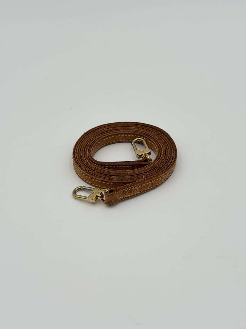 This vintage Louis Vuitton Vachetta Strap is made from brown vachetta leather with gold-tone hardware. The item is in good condition. The length is 113 cm.